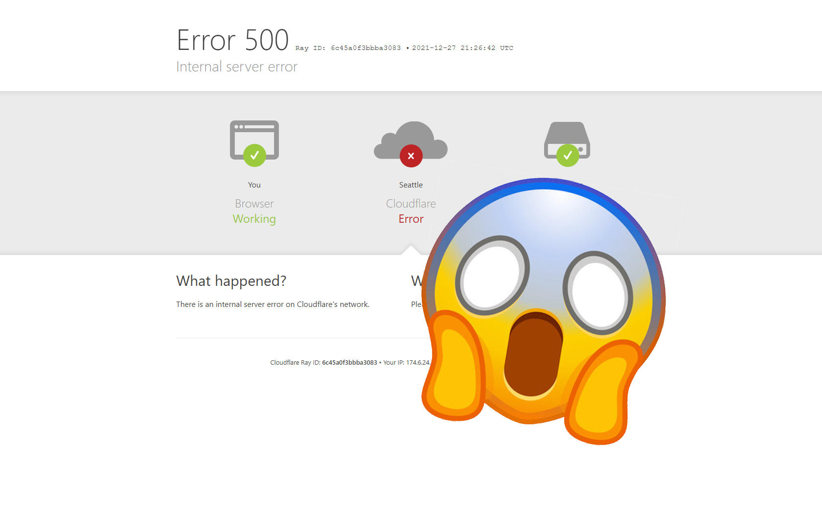 Suite à la panne chez Cloudflare, les utilisateurs et les entreprises ont rapidement été confrontés à une vague d’erreurs HTTP 500 (“Internal Server Error”) ou des messages d’indisponibilité, signifiant que le serveur contacté ne pouvait pas traiter la requête. L’impact a été immédiat et spectaculaire :